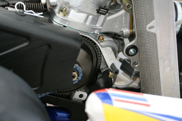 | Khun Tisanu and Khun Kanit both had 2 sessions each as well and were reasonably content with their outings. Khun Tisanu decided to make a major seat position change, while Khun Kanit worked on general kart setting for the DD2. In both Junior and Senior category the Rotax Max engines have been fitted with a new clutch (see picture below) and new balancing gear assembly. So far both have been working perfectly. |