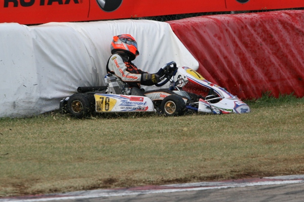 Sandy set the fastest times of all with his Rotax Max on the rain drenched track, thoroughly enjoying the fast track in the wet. In the prefinal he was up to 6th overall and with a significant lead in the Rotax max Junior class. The points from the prefinal already was enough to clinch the championship provided his closest rival would not finish higher then 3rd in the final (even if Sandy got no points).