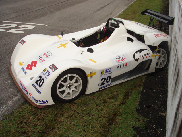Thomas Raldorf only got in limited practice time in his white Aim II concept car before the race, but instantly posted his best ever time around the Bira Circuit with a 1:11:0 lap. Saturday qualifying was shortened down to 15 minutes and one hour delayed due to a torrential downpour. Thomas is known as a rain master and did not disappoint, setting the fastest qualifying time and claiming pole position. The rolling race start was though of a different format from the normal kart rolling and Thomas got caught out a little in the start. He found himself several positions down by the first corner and started pushing real hard to catch up. He soon got past the first cars and started chasing down the lead duo. However there was water draining across the track, just on the entry point to the straight, pushing his hardest Thomas found the the small river and instantly lost all ground contact. From there on out it was only damage limitation for Thomas as he managed to take the impact with the wall with the cars rear end. Thomas did though prove his prowess in this very fast single seater and is now looking forward to getting back at the Bira track for the next Toyota Vios race in November. |