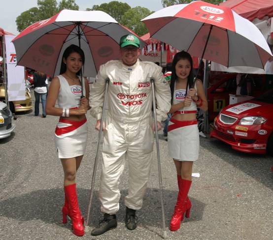 Thomas had been looking forward to driving his Vios car in his First ever car race in Thailand, but on the 17th of March he had a work related accident and Broke hi right foot in 2 places.