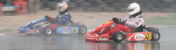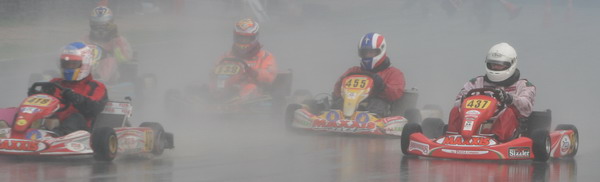 I held back in the start, as the spray from the karts in the front blocked any view I had. I felt confident that I would be able to advance, so I did not really feel worried at that time…..but then when I came around the first corner, the engine, was even more dead than normal, as we of course where carrying less RPM’s on it, and in the next corner, I tried to ride the kart around, controlling it on the throttle, like I normally do, but this was impossible, the more a blipped the throttle, the more the carburetor just flooded, and the slower it went.