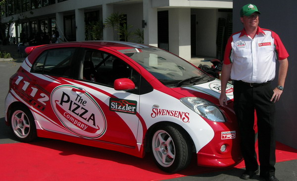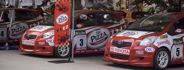 The car we will drive, will have number 18 on the side of the car, and it will be a red Toyota Vios with Pizza Company logo’s all over the sides. |