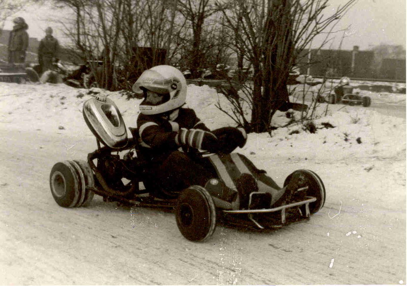 This picture is from back when I raced 60 cc go-karts in “Viadukten” at the age of 10 and 11. Here we drove all year round, as you can see on the picture we drive in the snow also. The way to do that was to deflate the tires, and put a motorbike chain around the tire, and place it in the middle and then inflate the tire, which would give you better grip on the snow and icy surface on the track. At one point we also put flat head self tapping 5 mm screws in each hole of the chain, but we went away from that again as it was to dangerous, should we collide with another driver. Here I won the club championship time, and thereby also the unofficial Danish Championship, as there were old 1 other club in Denmark at that time driving with 60 cc go-karts. |
